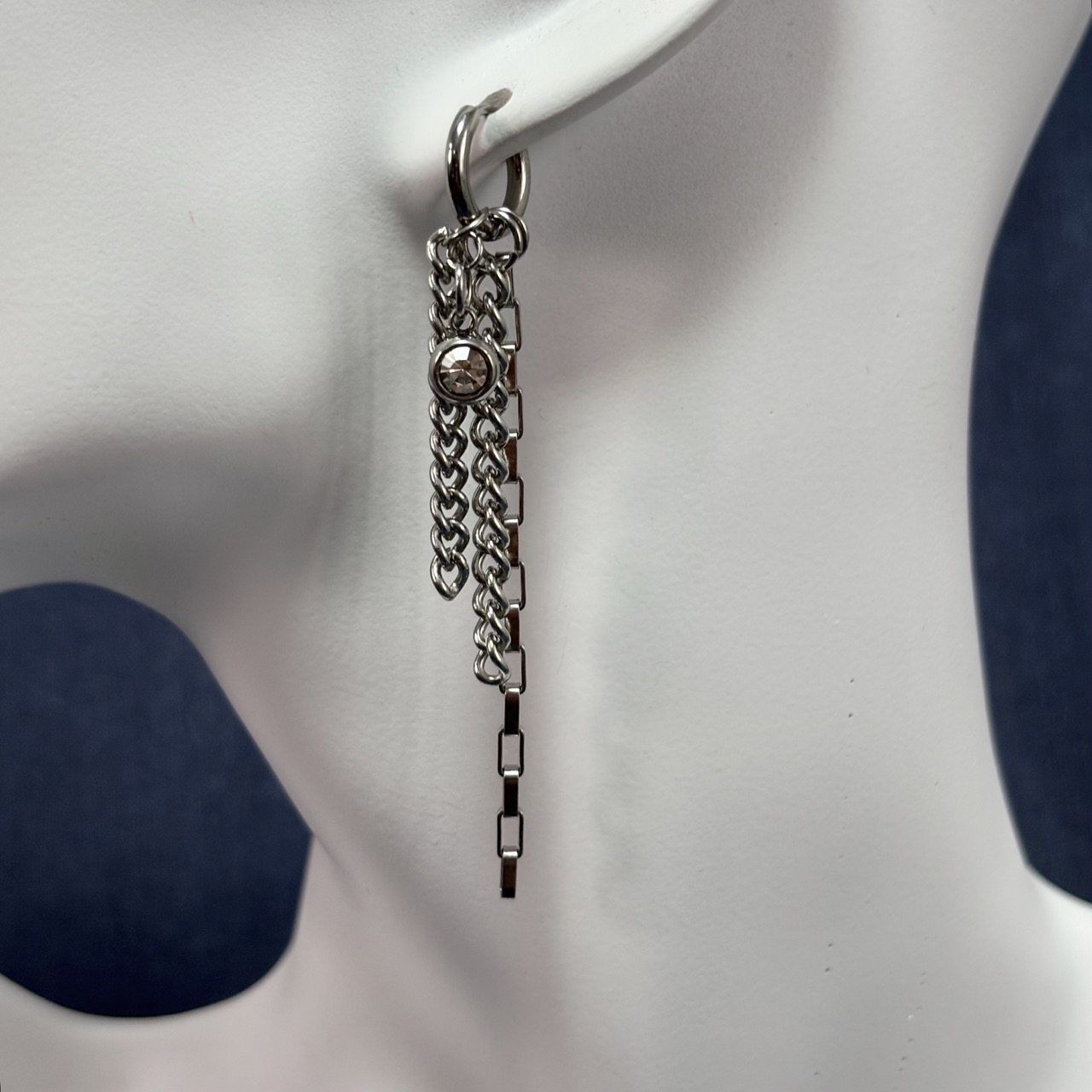 Серьги из стали с черной стразовой цепочкой, Замок: французский