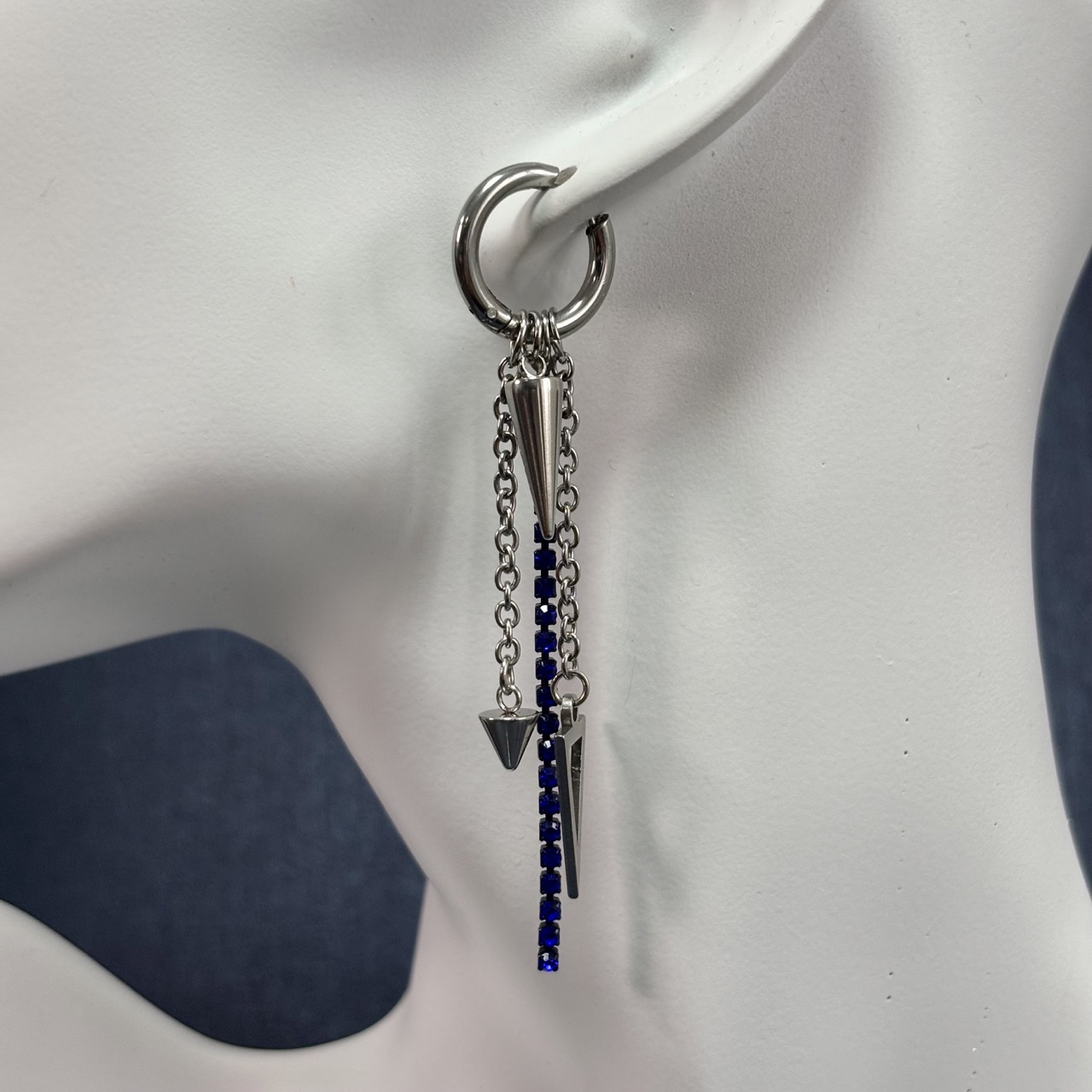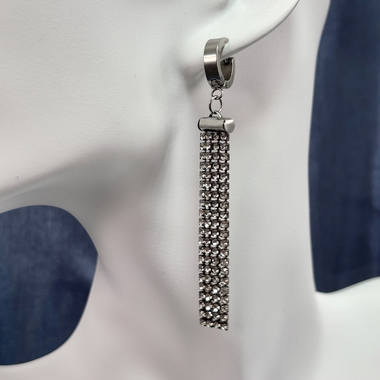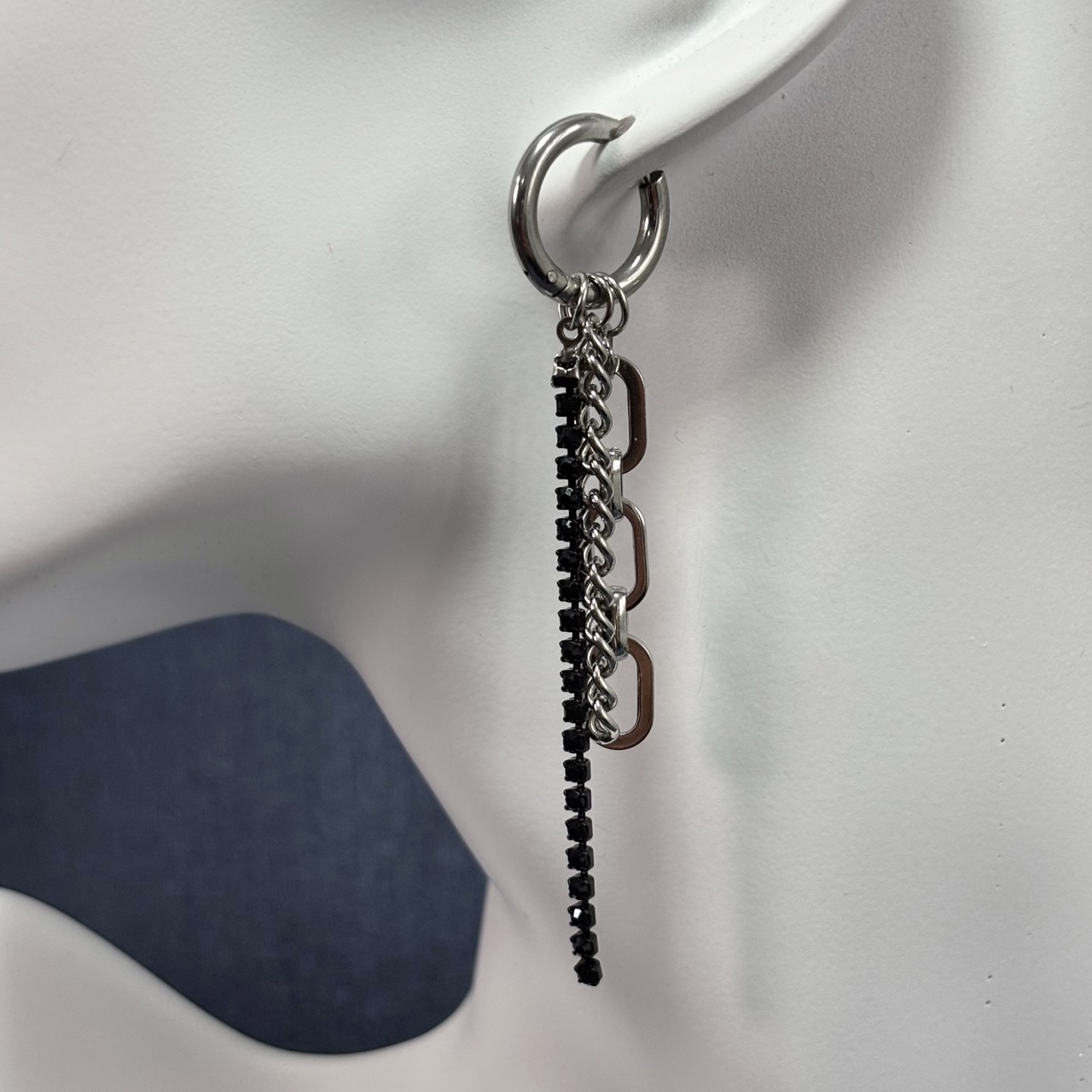 Серьги из стали с черной стразовой цепочкой, Замок: французский
